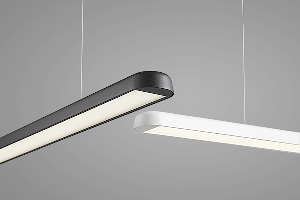 Motus Line is een pendelarmatuur dat is ontworpen voor montage direct boven het hoofd op de werkplek.