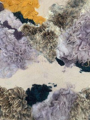 Deze organische wandkleden zijn een vrije geest in vilten vorm. Hun organische lijnen kronkelen als een stroom in de natuur, altijd in beweging, altijd verrassend. Net zoals in wolken herken je steeds weer nieuwe vormen en gezichten in dit levendige doek.