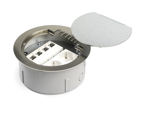 de ideale vloerdoos voor renovatieprojecten. De robuuste RVS-onderdelen maken de vloerdoos extra sterk. Door het ronde design is de installatie van deze vloerdoos super eenvoudig en snel, zelfs in bestaande vloeren.