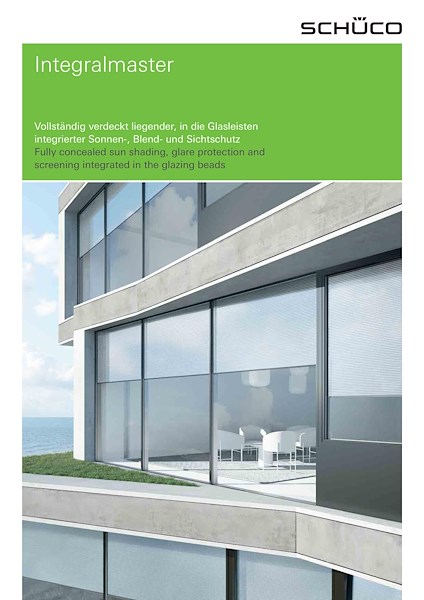 Als binnenzonwering zonder omvangrijke cassettes en zijgeleidingen biedt het Integralmaster zonweringssysteem design oplossingen door een naadloze integratie in de Schüco FWS 50 en 60 gevelsystemen.