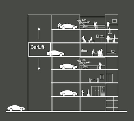 Het resultaat: de auto wordt rechtstreeks naar de woonlaag gebracht en geparkeerd op een privé