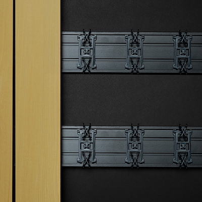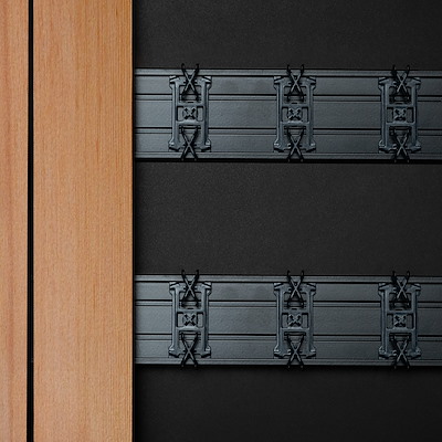 De kern van het systeem wordt gevormd door speciaal ontworpen clips van hoogwaardig POM (polyoxymethyleen). Dit materiaal is bestand tegen extreme temperaturen en wordt volledig in Nederland geproduceerd. De clips garanderen een stevige en duurzame bevestiging, zowel horizontaal als verticaal. Dankzij hun unieke vorm voorkomen ze verschuivingen, terwijl ze toch voldoende speling bieden om natuurlijke houtwerking op te vangen ā mits gebruikt met de aanbevolen houtsoorten van Houthandel Van Dam.