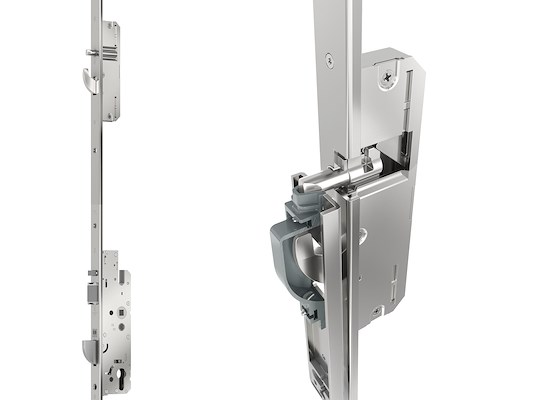 Om de deur op ieder moment betrouwbaar te laten vergrendelen, hebben we de automatische activeringsschoot in de hoofdslotkast aangebracht. Zo wordt het perfecte sluiten onafhankelijk van de sluitnaad altijd gegarandeerd, ook bij kromtrekken van de deurvleugel. Voor een echte drievoudige vergrendeling zorgt de automatische 20 mm-uitsluiting van de zwenkhaken en van de nieuw ontworpen nachtschoot – dankzij nieuwe geometrie reeds vanaf 35 mm doornmaat.