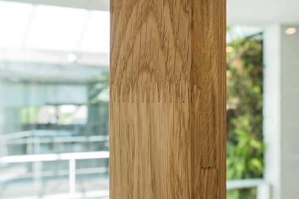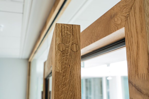 Het eikenhout van de WoodFrame Door is voor 90% afkomstig uit productierestanten van de meubelindustrie en is zorgvuldig gesorteerd op kwaliteit en kleur. Deze stukken resthout worden daarna gelamineerd, gevingerlast en geschaafd.
