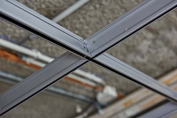 24 mm ophangsysteem met universeel hoofdprofiel en dwarsprofielen met vlak aansluitende flens.