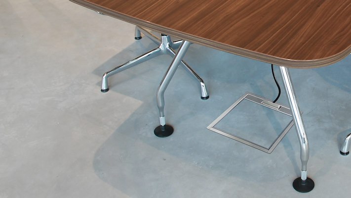 Het systeem maakt het mogelijk aansluitpunten in een bestaande vloer op te nemen zonder zichtbare installaties in het interieur, waardoor werkplekken van stroom en data worden voorzien terwijl de vloerafwerking ononderbroken blijft.