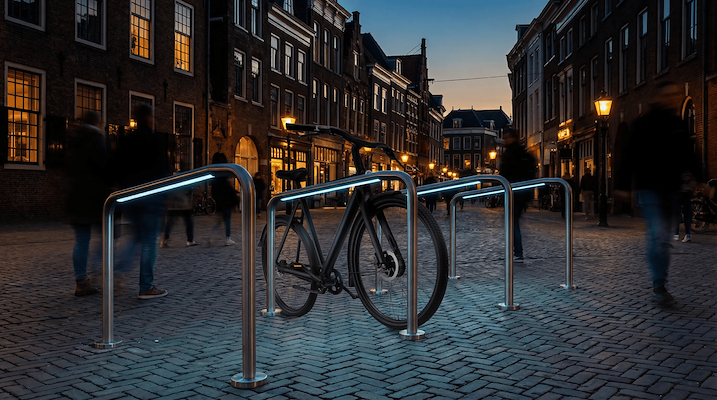 Verlichte fietsbeugel voor veilige en hoogwaardige buitenruimte