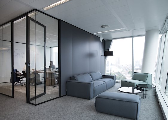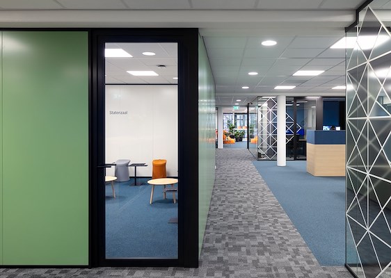 Gesloten wandsysteem met akoestisch comfort voor rust en privacy in alle kantoorruimtes.