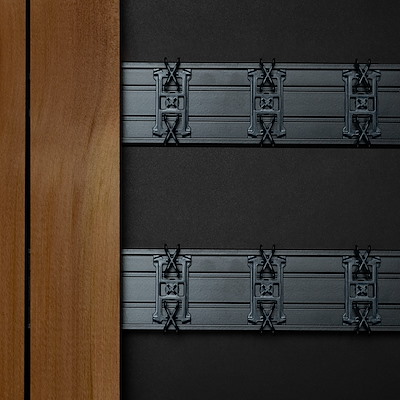 De kern van het systeem wordt gevormd door speciaal ontworpen clips van hoogwaardig POM (polyoxymethyleen). Dit materiaal is bestand tegen extreme temperaturen en wordt volledig in Nederland geproduceerd. De clips garanderen een stevige en duurzame bevestiging, zowel horizontaal als verticaal. Dankzij hun unieke vorm voorkomen ze verschuivingen, terwijl ze toch voldoende speling bieden om natuurlijke houtwerking op te vangen ā mits gebruikt met de aanbevolen houtsoorten van Houthandel Van Dam.