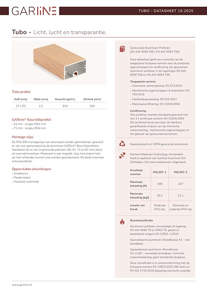 De profielen worden geproduceerd uit volledig gerecycled aluminium. Daarmee is Tubo een toekomstgerichte keuze voor projecten waarin circulariteit en lange levensduur een rol spelen.