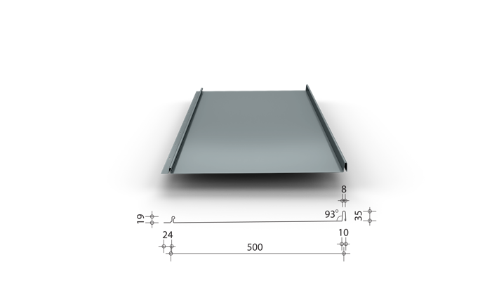 KlikFels heeft standaard een werkende breedte van 500 mm en is voorzien van een fijne fels van 8 mm breed en 35 mm hoog. Tevens wordt de SCH-KlikFels onzichtbaar bevestigd in de dubbele overlap, die is voorzien van een handige perforatie. Hierdoor laat de SCH-KlikFels zich eenvoudig en snel monteren.