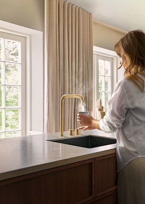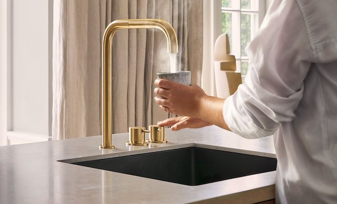 Met de nieuwe VOLA KV5 introduceert het merk een unieke keukenkraan waarin vijf waterfuncties samenkomen in één elegant ontwerp. Van warm en koud water tot kokend water: alles is intuïtief en veilig te bedienen. De kraan functioneert vertrouwd als een klassieke mengkraan, terwijl een aparte bediening extra veiligheid biedt bij kokend water.