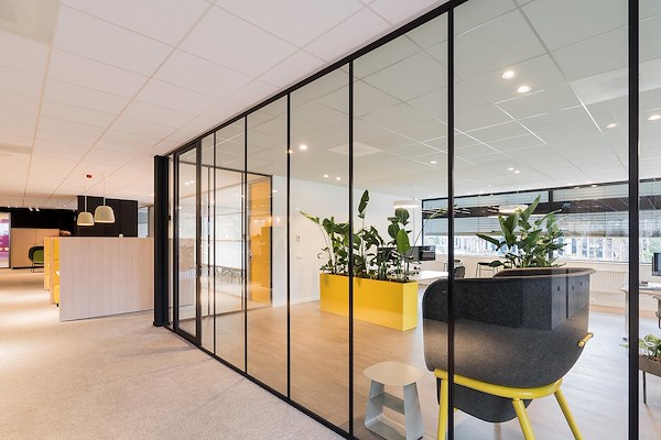 Natuurlijke en krachtige uitstraling bij een glazen systeemwand.