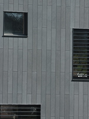 Door de textuur van het materiaal, de mogelijkheid tot verschillende afwerkingen en de schaal van de elementen ontstaat een subtiel spel van licht, schaduw en kleurnuances. Afhankelijk van standpunt en lichtinval krijgt de gevel steeds een andere ritmiek en dieptewerking.