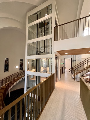 Axess Infinity tractielift personenlift in transparante stalen schacht