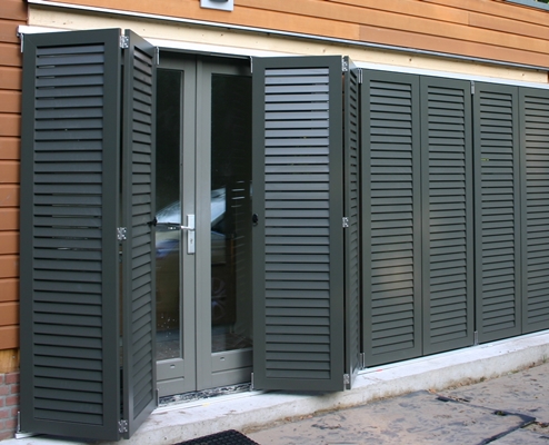 ” wordt tegenwoordig veel toegepast in moderne architectuur. Kantoorgebouwen, appartementencomplexen of soortgelijke projecten dienen voorzien te worden van een goede zonwering. Naast de vraag om goede zonwering willen architecten een gevel met uitstraling ontwerpen. Met grote glasoppervlaktes ontstaat veel inkijk. De vouwluiken zorgen voor minder inkijk en zijn veelal een opvallend onderdeel in het gevelaanzicht.