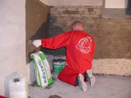 Betoninjectie bij watervoerende scheuren in een betonnen kelderwand. Dit alles gebeurt met Köster Polyurethaan injectieharsen, milieuvriendelijk, snel en met goedkeuring voor de verwerking in drinkwatergebieden. Vlaksgewijs afdichten met waterreactieve mortels bij metselwerk. Met vlaksgewijs afdichten kan een sterkte worden behaald die gelijk is aan het weerstaan van een waterdrukkolom van 154m1. scherminjecteren dwz de kelderwand aanboren van binnen naar buiten en tegen het grondpakket aan injecteren. Dit gebeurd met een 1 componenten Köster Polyurethaanhars waarbij water als katalysator werkt.