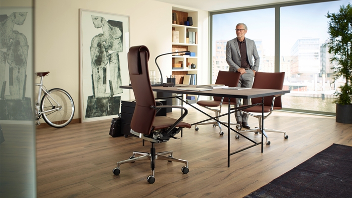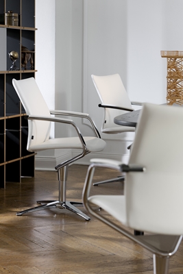 Minimalisme qua design met het vanzelfsprekende comfort van de luxeklasse. Ciello vormt met zijn heldere, slanke contouren plaatsen van communicatie en inspiratie. De vergader-draaifauteuil zorgt voor mobiliteit en dynamiek tijdens het rondetafelgesprek. Na afloop wordt de oorspronkelijke tafelschikking weer snel hersteld met behulp van het terughaalmechanisme.
