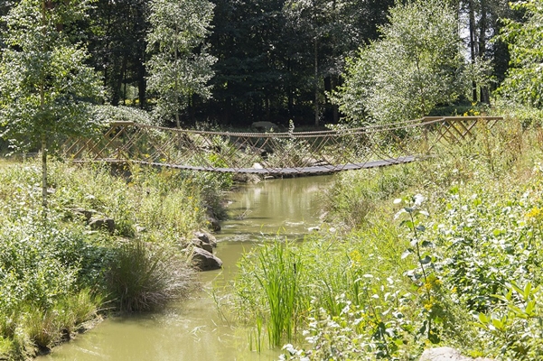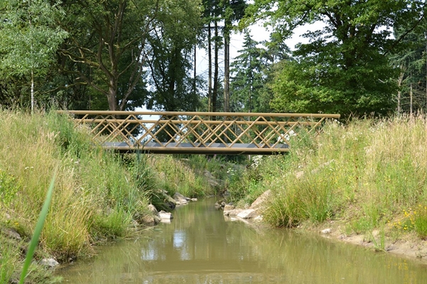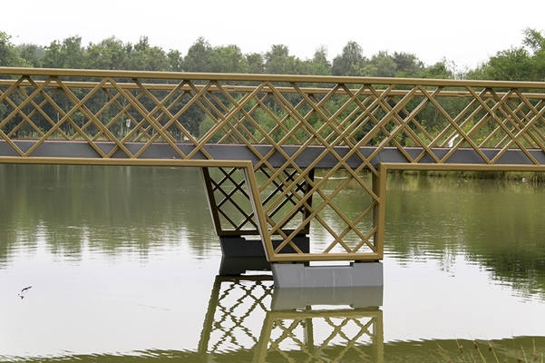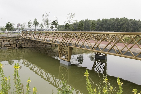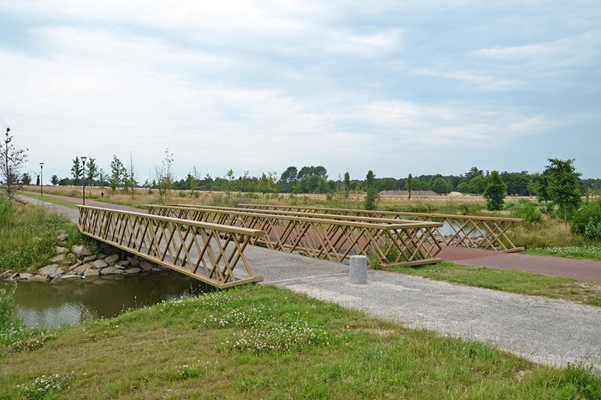 De bruggen krijgen door de vakwerkstructuur ook een zeker rustiek karakter dat past bij het landschapspark Meerland. Dit wordt versterkt door het staalwerk in een beige-bruine kleur te conserveren.