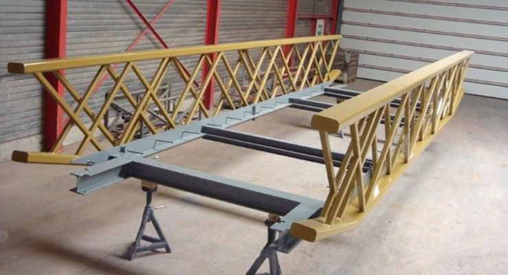Om tot een slanke uitstraling te komen hebben we besloten de hoogte die gegeven is voor de brugleuningen constructief te gebruiken; het brugdek is daar tussen gehangen. De vakwerkligger waar we van uitgaan is een z.g.n. tralieligger, in het verleden veel gebruikt bij spoorwegbruggen. Het karakter van deze ligger is de uitzonderlijke slanke profileringen die mogelijk is; alleen waar de spanningen het grootst zijn is er materiaalverdichting.