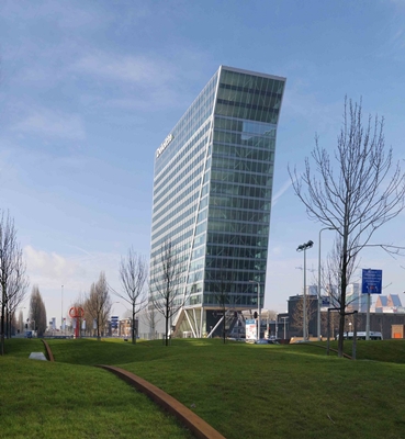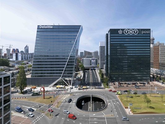 De locatie ligt ingeklemd tussen een kleinschalige woonomgeving, de snelweg en een druk verkeersplein. Geprobeerd is om het grootschalige kantoorgebouw goed in te passen in de kwetsbare woonomgeving. Zo is de oorspronkelijke hoogte van de plint van het gebouw verlaagd tot het niveau van de aangrenzende woonblokken. Hiervoor zijn ondergronds extra parkeerlagen aangelegd. Een blinde garagemuur aan de woonstraat is vermeden door tussen de gevel en de parkeergarage een vijf meter brede kantoorstrook te bouwen. Verder zijn in de transparante plint een lobby en voorzieningen ondergebracht voor gebruikers, bezoekers en de omgeving. Dit maakt de straat levendiger en bevordert sociale controle.