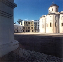 De nieuwe huisvesting voor de Nederlandse Ambassade in de Oekraïne is gesitueerd op een in de Tweede Wereldoorlog ontstaan gat in de pleinwand van het Kontraktova Ploshcha (Kontraktplein) in het hart van het Podol district, een van de oudste gedeelten van Kiev. Het gebouw bestaat uit vier kantoorlagen rondom een atrium, een apart toegankelijk consulaat en een parkeerkelder. De centrale positie van de representatieve hoofdentree met rechts de entree van het consulaat en links de garagedeur is geïnspireerd op de symmetrische gevelindeling van de oorspronkelijke bebouwing, een negentiende-eeuws (woon)gebouw met een centrale poort en twee zijpoorten. De gevels zijn uitgevoerd in zandsteen in verschillende formaten en afwerkingen: glad metselwerk ter hoogte van het basement en ruw gefrijnde platen met diepe negges rondom de raamopeningen ter hoogte van de verdiepingen. Horizontale betonbanden markeren de overgang tussen basement en bovenbouw en beëindigen de gevel aan de bovenzijde bij wijze van ‘kroonlijst’. De resulterende klassieke driedeling in basement, bovenbouw en kroonlijst correspondeert met de verticale geleding van de belendende panden. De vrije verdeling van de verticale vensters over de gevel relativeert de symmetrie van de hoofdopzet. De kromming van de voorgevel reageert op het recent herbouwde kerkje in het midden van het plein. Aan de zijkant springt het bouwvolume zodanig in dat er ook vanaf deze zijde daglicht in het centrale atrium valt.
