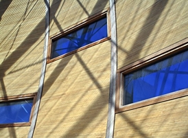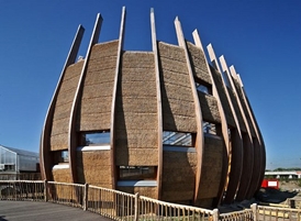 Het gebouw is voorzien van rietbedekking aan de buitenzijde en is bekleed met een plaatmateriaal gemaakt van geperst gras aan de binnezijde.