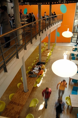 De Haagse Hogeschool is opgezet als een verzameling onderwijsvleugels die worden ontsloten vanuit een centrale kern annex service-unit. Deze ovaalvormige centrale kern vormt de ruimtelijke, functionele en symbolische spil van het omvangrijke complex (83.000 m2 vloeroppervlak) dat dagelijks onderdak biedt aan 13.000 dagstudenten en 2.500 avondstudenten.