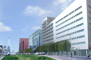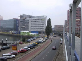 De nieuwe vestiging van de Sociale Verzekeringsbank te Rotterdam wordt gebouwd op de Kop van Zuid. Het gebouw bestaat uit twee haaks op elkaar staande volumes, één van elf verdiepingen ( in totaal ca. veertig meter hoog) en een iets langgerekter deel van acht verdiepingen. Roestvrij staal kenmerkt het uiterlijk van het gebouw. De totale vloeroppervlakte van het gebouw bedraagt 13500 m2, waarvan de SVB 9500 m2 in beslag neemt. Het SVB deel is voorzien van glazenwasbalkons met een vrijhangende buitenzonwering. De horizontale belijning hiervan sluit aan op de horizontale belijning van het naastgelegen Ichthus college. De wandelpassage onder dit gebouw is doorgetrokken naar het SVB kantoor, zodat een arcade ontstaat. Door de terugspringende onderbouw lijkt het gebouw boven de haven te zweven. De scheve gevelbeëindiging, de schuine bovenbeëindiging van de passage en de glazenwasbalkons roepen associaties met schepen op.