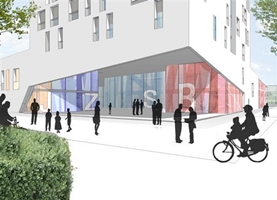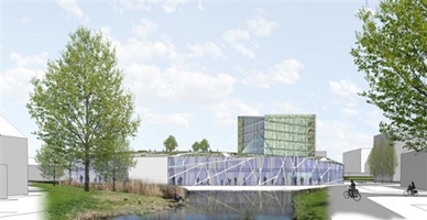 Al met al ontstaat zo een royale en zichtbare overgang tussen de twee sferen van centrum en woonwijk, en fungeert de nieuwe massa stedenbouwkundig niet als barriere maar als uitnodigende entree.