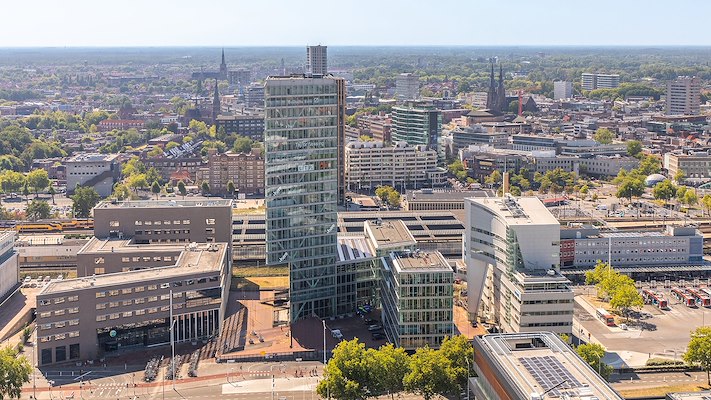 In verticale zin onderscheidt KCAP de transparante maaiveld zone die tot een hoogte van 7 meter is gedefinieerd, en waarin bij voorkeur openbare functies worden gehuisvest. Tot een hoogte van 22 meter worden de bebouwingsstroken gevuld met kantoren en boven deze daklijn mag, en ieder gebouw is daarin vrij, een opbouw gebouwd worden. Met zijn volledig glazen gevels (de toren werd als eerste in Nederland met een zogenaamde ‘dubbele-huid-façade’ uitgevoerd!) is de Kennedytoren een blikvanger in het gebied.