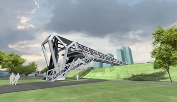 De brug is ontworpen als een vakwerkligger van 230 meter lang. Er is gekozen voor het mechanische model, waarbij de twee uiteinden/opleggingen zijn ingeklemd. Niet alleen kan de brug daarmee zo slank mogelijk worden gedimensioneerd, tevens geeft deze oplossing de brug een dynamisch uiterlijk. De brug is primair ontworpen om het kabels- en leidingennetwerk te faciliteren, maar is ook ruimtelijk aangepast om als voetgangersovergang te dienen. De doorsnede van de brug volgt het krachtenverloop en heeft de ruimte in de constructie die nodig is voor het voetgangersgedeelte: trapeziumvormig aan de uiteinden, rechthoekig in het middengebied.