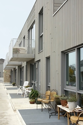 Uitzicht, ontsluiting en bezonning hebben tot verschillende woningtypen geleid. De twee hoofdtrappenhuizen ontsluiten een doorlopende galerij op de eerste verdieping, die zich van buiten naar binnen rond en door de blokken weeft en op sommige plekken is gecombineerd met een privé buitenruimte.