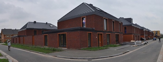 De twee-onder-een-kapwoning is een van de populairste woonvormen in Nederland. Binnen het strenge keurslijf van deze twee-onder-een-kapwoning is gezocht naar een statige en verrassende verschijningsvorm. De gevels worden horizontaal geleed door stalen profielen, waartussen zich zilvergrijze metselwerk-vlakken en verdiepingshoge puien bevinden. De samenhang tussen de blokken wordt versterkt door de tuinmuren als onderdeel van de architectuur uit te voeren. Langs het binnenterrein zal deze plint in hout worden uitgevoerd, zodat een contrast ontstaat met de openbare zijde.