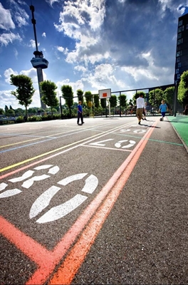 Het uiteindelijke resultaat daagt kinderen uit om op meerdere manieren te spelen, terwijl het volwassenen de gelegenheid geeft om het plein als verblijfplaats in bezit te nemen.