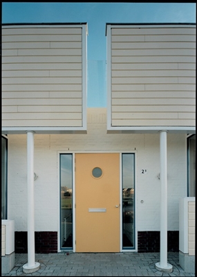 De belangrijkste inspanning bij het ontwerpen van dit verpeeghuis is dan ook meer gericht op wat mensen bindt en gemeenschappelijk hebben, dan op wat mensen scheidt en specifiek maakt. Alleen dan kun je voorkomen dat het verpleeghuis een randverschijnsel wordt, in plaats van wat het werkelijk is een wezenlijk onderdeel midden in ons leven. Midden in een nieuwe woonwijk in Almere-Stad, langs de centrale toegangsweg naar de wijk, nabij het nieuwe winkelcentrum is een terrein gereserveerd voor het nieuwe verpleeghuiscentrum. Zowel voor permanente bewoning als voor poliklinische zorg en ondersteuning voor de thuiszorg, een goede lokatie. Voor chronische verpleeghuiszorg is het terrein opgevat als een onderdeel van een woonwijk. De wooneenheden zijn gesitueerd als huizen langs de omringende wegen, met eigen voordeuren en woonkamers aan de straatkant, waar leven en beweging is. Meer naar binnen liggen de één- en tweepersoons kamers, uitkomend op ‘hofjes’, enigzins besloten, maar toch weer met zicht op de wijk. Sanitaire- en dienstruimten zijn gekoppeld per 2 ‘huizen’. Door laagbouw ontstaat een optimale wisselwerking met de directe woonomgeving, een grotere gelijk-waardigheid van de huizen waardoor meer flexi-biliteit in gebruik wordt bewerkstelligd, en bovendien de mogelijkheid wordt gecreëerd daglicht ook in de compacte en inpandig gelegen sanitaire dienst-gedeelten te krijgen. De huizen zijn zo geconstrueerd dat onafhankelijk van de orientatie op de zon daglicht in het huis wordt gebracht en er geen donkere gedeelten onstaan. De routes in het huis gaan, begeleid door licht, altijd van licht naar licht. Aan de achterzijde zijn alle huizen gekoppeld door een omloop. Deze omloop of binnenstraat vormt de verbinding naar het centrale dienstencentrum en geeft rechtstreeks toegang tot en vorm aan een grote afgesloten binnentuin. Naast aandacht voor de bebouwing is veel aandacht geschonken aan de ruimten tussen de bebouwing. De contramal van de bebouwing draagt zorg voor de onderlinge samenhang en voor de verankering aan de maatschappij. Geen restruimten maar zorgvuldig vormgegeven ‘interne stedebouw’. Daglicht, begrijpelijke en tastbare materialen en een heldere structuur dragen hopelijk bij aan de directe zintuigelijke en emotionele beleving van het nieuwe thuis.