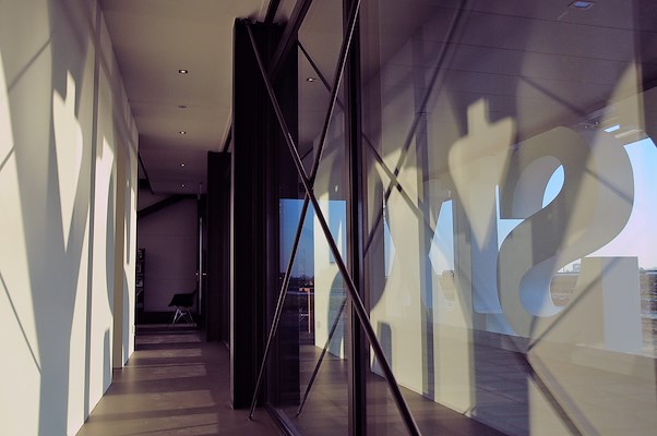 De voorzijde van het gebouw, als antwoord op de prominente ligging aan de A7, wordt gevormd door de volledig opgetilde eerste verdieping van het kantoordeel. Het overkragende kantoordeel wordt gedragen door het verdiepingshoge logo van ‘FIFTYSIX’. De twee verdiepingen hoge hal, wachtruimte en kantine strekken zich uit over de volledige breedte van het pand en vormen het hart van het gebouw. Less is more is ingezet om de kosten van het gebouw te beperken. Door weg te laten wat weggelaten kon worden en zo veel mogelijk in standaard producten en afmetingen te ontwerpen, is niet alleen veel geld bespaard maar wordt tegelijkertijd aangesloten bij de branding en het stoere karakter van Fiftysix.