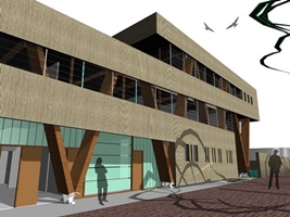 Ontwerp van een bedrijfsgebouw voor twee gebruikers, Zuiveringsbeheer en Waterbeheer.