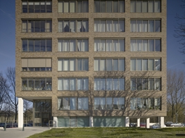 De toren is zorgvuldig vormgegeven met genuanceerde zandkleurige baksteen gemetseld in dubbel-halfsteensverband en grote bronskleurige gevelkozijnen in diepe negges. De insnijding in de zuidgevel maakt het volume verticaler. De gevelkozijnen in de noordgevel zijn in het gevelvlak gedetailleerd en de extra hoge dakrand vormt een beëindiging van de toren.