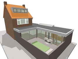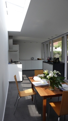 De woning is qua oppervlakte en ruimtebeleving zo sterk getransformeerd dat er niet zozeer sprake meer is van een uitbreiding van het woonhuis, maar van een compleet