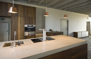 In de oude deel heeft de grootste transformatie plaatsgevonden. Ook deze ruimte moest geïsoleerd worden. Om het oude stalkarakter te behouden en delen van de prachtige muren met de zichtbare geschiedenis niet kwijt te raken, zijn de voorzetwanden hier alleen tussen de bestaande muurpenanten geplaatst. Zo blijft de oplegging van de oude ankerbalk op het hamerstuk in de muur, zichtbaar. Een verwarmingsbuis van de vloerverwarming is in de voorzetwand rond de penanten getrokken zodat een koude brug en bijbehorende condensatie voorkomen wordt.