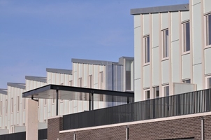 De in totaal 48 woningen vormen samen op een spannende wijze de begrenzing van de naastliggende woonwijk, die verder voornamelijk uit ééngezinswoningen bestaat. Om te kunnen voldoen aan de hoge geluidseisen, zijn de van oorsprong losse blokken op vernuftige wijze gekoppeld, zodat zij als het ware een natuurlijke geluidwal voor de achterliggende wijk vormen.