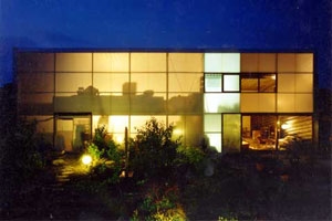De beperking van de mogelijkheden is niet als belemmerend ervaren, maar juist optimistisch gehanteerd om een gebouw te ontwerpen met een bijzondere uitstraling. De omgeving, met identiteitsloze woningbouw en karakterloze bedrijfsgebouwtjes, gaf aanleiding voor een solitair gebouw met een heldere, direct herkenbare vorm. Een tunnel van aluminium profielplaat vormt het dak en de korte gevels. Het gebouw opent zich naar de tuin en de straat. Deze gevels zijn van translucent kunststof: doorschijnend maar niet doorzichtig. Voor uitzicht en doorgangen zijn openingen in het kunststof gesneden. De functionele opzet heeft de helderheid die bij de gebouwvorm past. Een zone met bergingen, natte ruimten en installaties vormt een buffer tussen de woning en het atelier, welke beide vrij indeelbaar zijn. Door de simpele opzet en de eenvoudige vorm kon de bouw rationeel worden aangepakt. Zo werd het voor de opdrachtgever mogelijk de bouw te coördineren en grotendeels zelf uit te voeren.