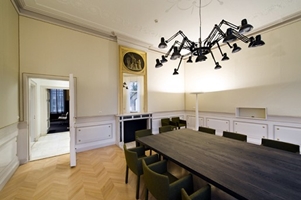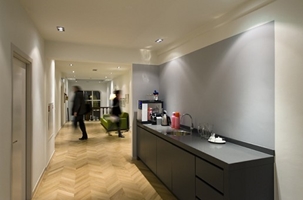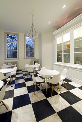 Voor informeel overleg zijn er verschillende typen plekken gerealiseerd. Een loungebank op de tweede verdieping, een grote tafel in de Tuinkamer, een overlegplek in de Bibliotheek die tevens als wachtruimte voor bezoekers fungeert. Meer formeel overleg vind plaats in de statige Besierkamer, genoemd naar de eerste eigenaar van het pand. In de voormalige keuken is de Eetkamer ondergebracht. Een ruimte waar de medewerkers gezamenlijke lunchen.