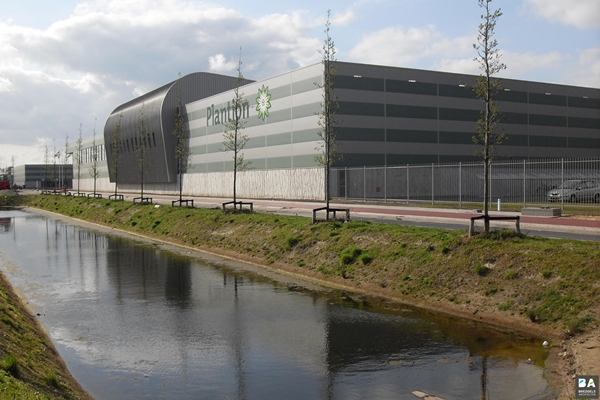 Toen eind 2007 duidelijk werd dat het door ons bedachte bouwgrond-besparende gestapelde veilingconcept voor Plantion in Ede wat te gewaagd was, pakten we terug op het optimaliseren en automatiseren van het traditionele “spread-out-type” veilingcomplex. In deze 65.000 m² grote “platte pannenkoek” zochten we naar een architectonisch contrapunt.