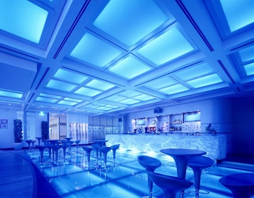 De bar is een spektakel stuk van het gebouw, uitgevoerd in neutrale zilver- en grijstinten, kan de ruimte door schakelen van de verschillende gekleurde buizen achter lichtdoorlatende panelen in het pand en de vloer een reeks van kleuren aannemen.