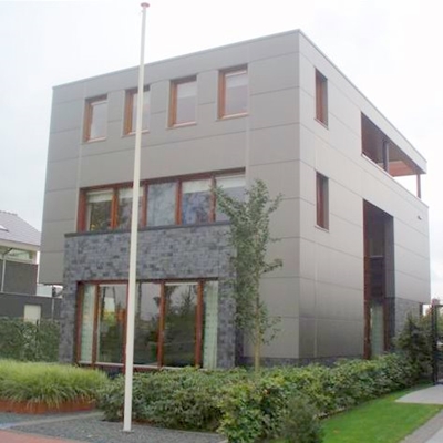 Een zeer vooruitstrevend ontwerp voor een modern vrijstaand woonhuis met kantoor van Schlingmann Architecten te Veenendaal. De keuze van vorm, kleur en materialen zijn zodanig gekozen dat het betreffende ontwerp zijn tijd ver vooruit is. Het wonen en werken is zodanig geïntegreerd dat de functies zich geheel onafhankelijk laten gebruiken.