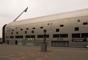 Speciale voorzieningen Voor supportersgroepen van bezoekende clubs is een aparte bussluis voor twintig bussen voorzien, afgeschermd met een 5 meter hoog hek van geperforeerde staalplaat. Vanaf de uitstapplaats gaan de supporters via een speciale brug direct naar het eigen vak.Voor de veiligheid van de spelers is er een beweegbare spelerstunnel die het veld op en af schuift. Het stadion is een zogenaamde 'onderlader': het publiek betreedt de tribunes vanaf de ADO-passage. De toegangen zijn er op berekend dat het publiek bij calamiteiten reflexmatig langs dezelfde weg terugkomt. Het ontruimingsplan is berekend op 6 minuten voor de tribunes, 2 minuten voor de ADO-passage, en 15 minuten voor het hele stadion.
