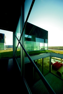 grasdak, biedt uitzicht over water en Diemerpark. Boven deze glazen ruimte is een gesloten volume, een kamer