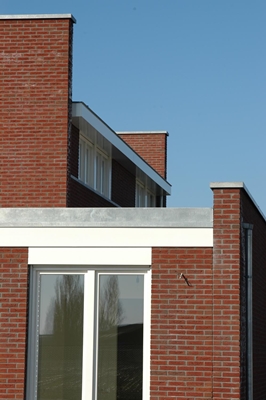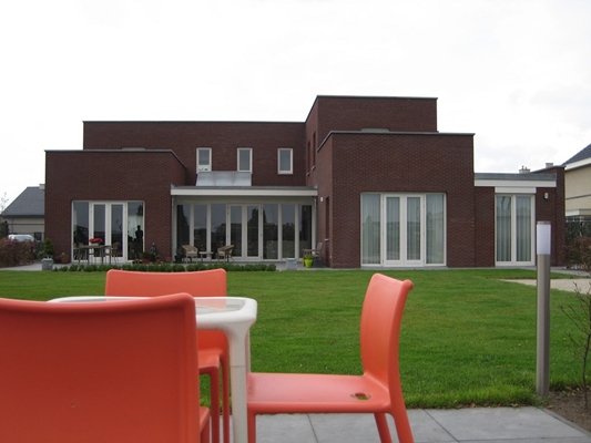 De opdrachtgevers hadden een woning voor ogen die als een geheel eigen ‘maatpak’ zou aansluiten bij hun leven en woonwensen: een geborgen plek met ruimte voor de belangrijkste woonfuncties op de begane grond aan de tuinkant. Het huis bestaat uit een serie volumes, voorzien van een flauw hellende kap met vlakke pannen, die in een U-vorm geschakeld zijn en variëren in oriëntatie. In deze U is de open, lichte woonkeuken met zijn platte dak als hart van de begane grond geschoven. De luifel, die dienst doet als bouwkundige zonwering, benadrukt het vergezicht op het zuiden.